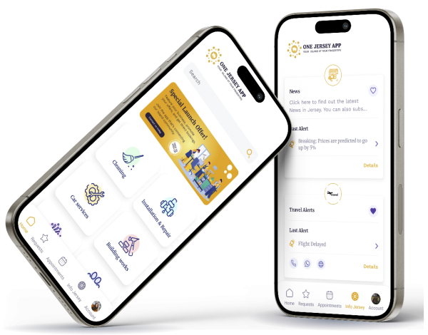 At One Jersey App, our mission is to allow Jersey residents to stay connected, book services, and get real-time island updates – all in one simple, easy-to-use app designed around Jersey life. This new platform is here to bridge the gap, while offering users a range of local experts in everything from repairs and maintenance, as well as live island updates – all in One Jersey App!